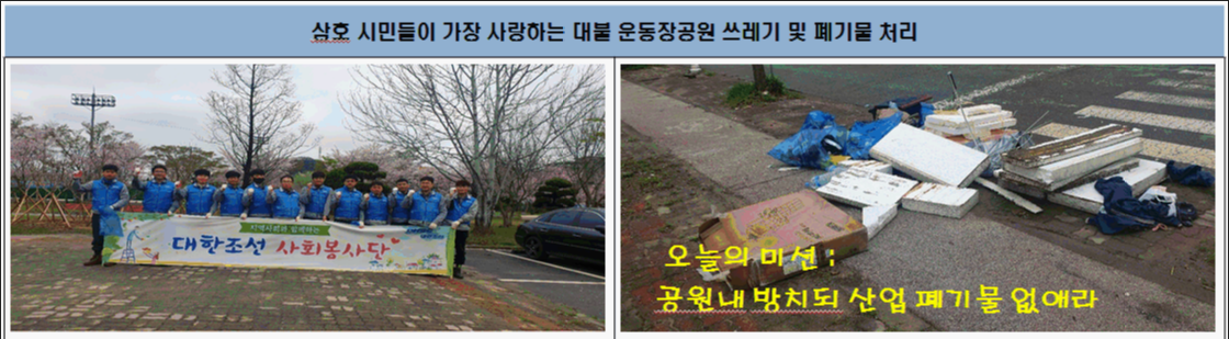 ○ 활동 : 공원 내 방치된 산업 폐기물 정화