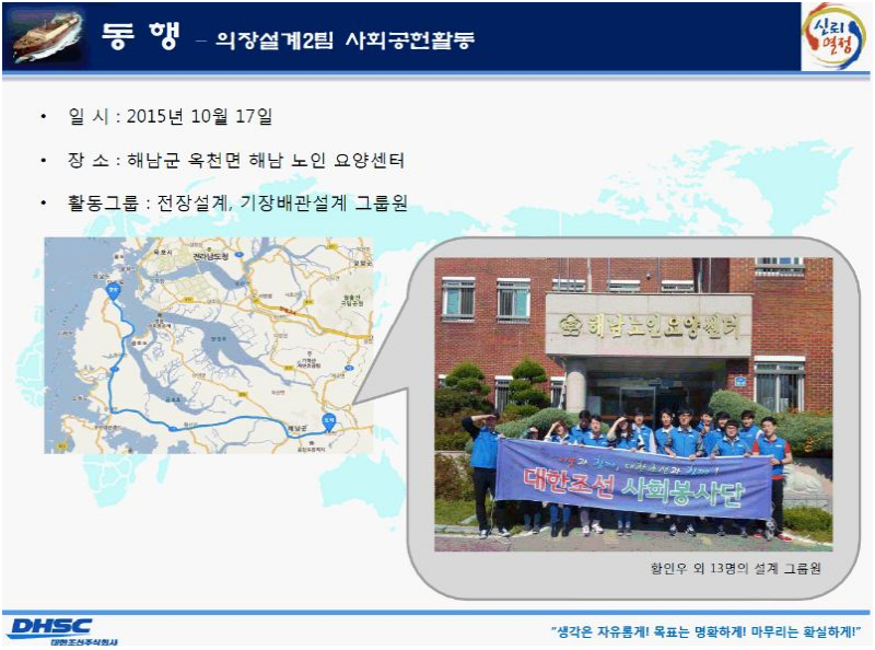 - 장소 : 해남군 옥천면 해남 노인 요양센터