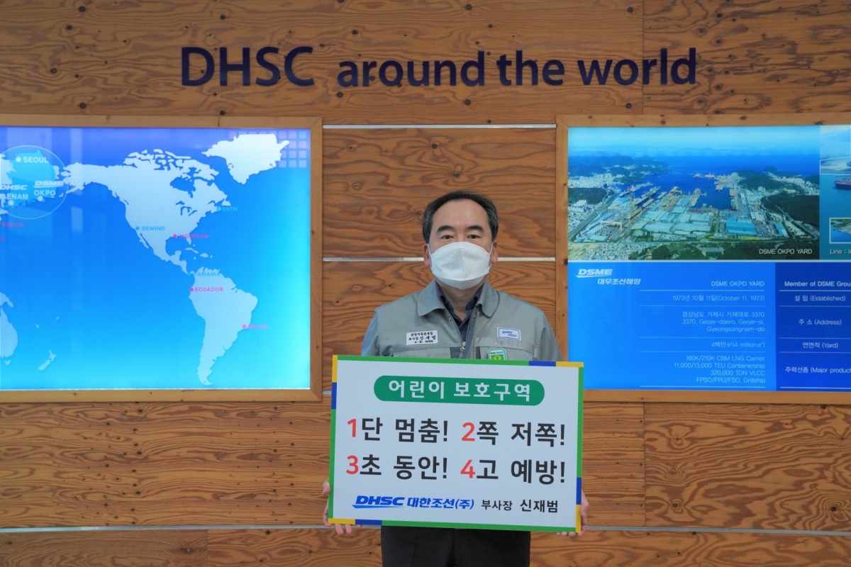 Shin Jae-Bum, vice president of Daehan Shipbuilding, participated in the "Children's Traffic Safety Relay Challenge" on Feb. 1 to establish a traffic safety culture within the children's protection area.