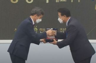 At the departure ceremony of the Hannarae, Daehan Shipbuilding Co., LTD CEO Chung Dae-sung received an appreciation plaque to construct it safely and successfully without any accident.