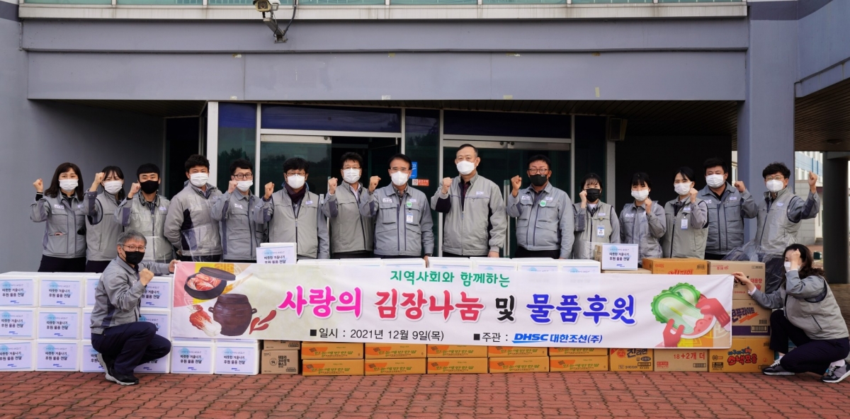 Donating kimchi is a community contribution activity that Daehan Shipbuilding has been doing for a decade since 2012. They hold the event to communicate with residents and share warmth with the underprivileged at the end of the year as a representative company of the local community.