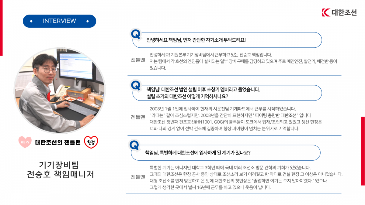 [2024.09.06 사내 발간] 대한조선 입사 16년 9개월 4일, 초창기 멤버를 만나다!