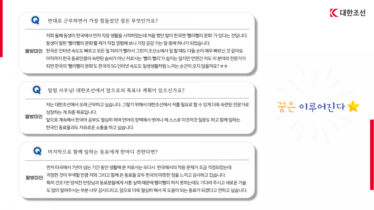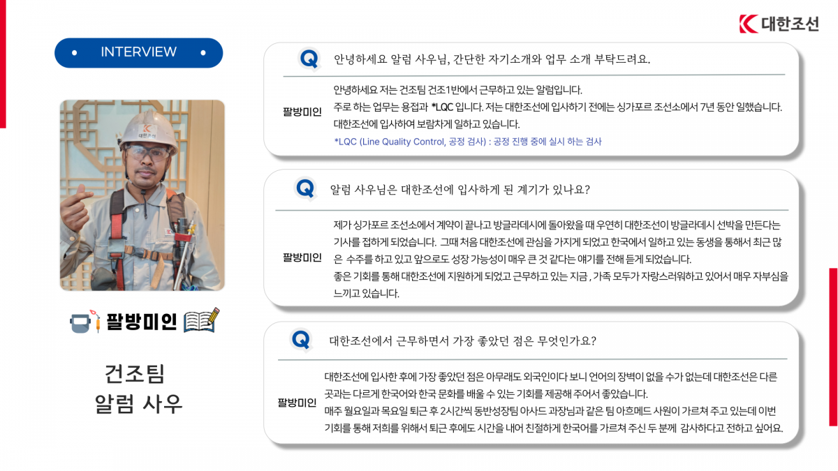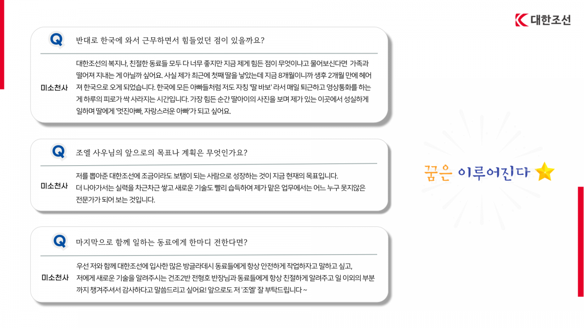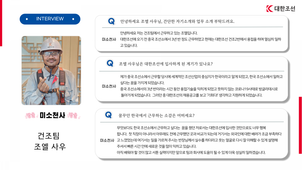 [2024.11.22 사내 발간] 코리안 드림 6개월 차, 대한조선에서 꿈을 펼치다!