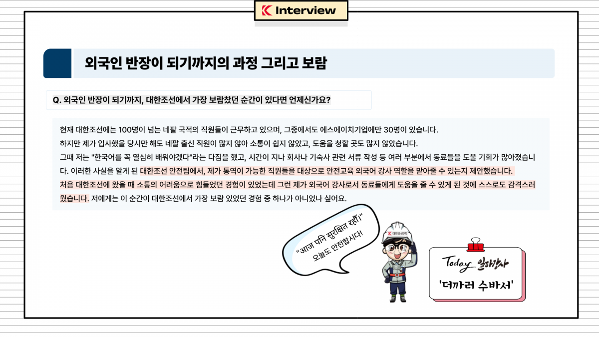 [2025.02.07 사내 발간] 외국인 출신 '반장 1호' 주인공을 소개합니다.