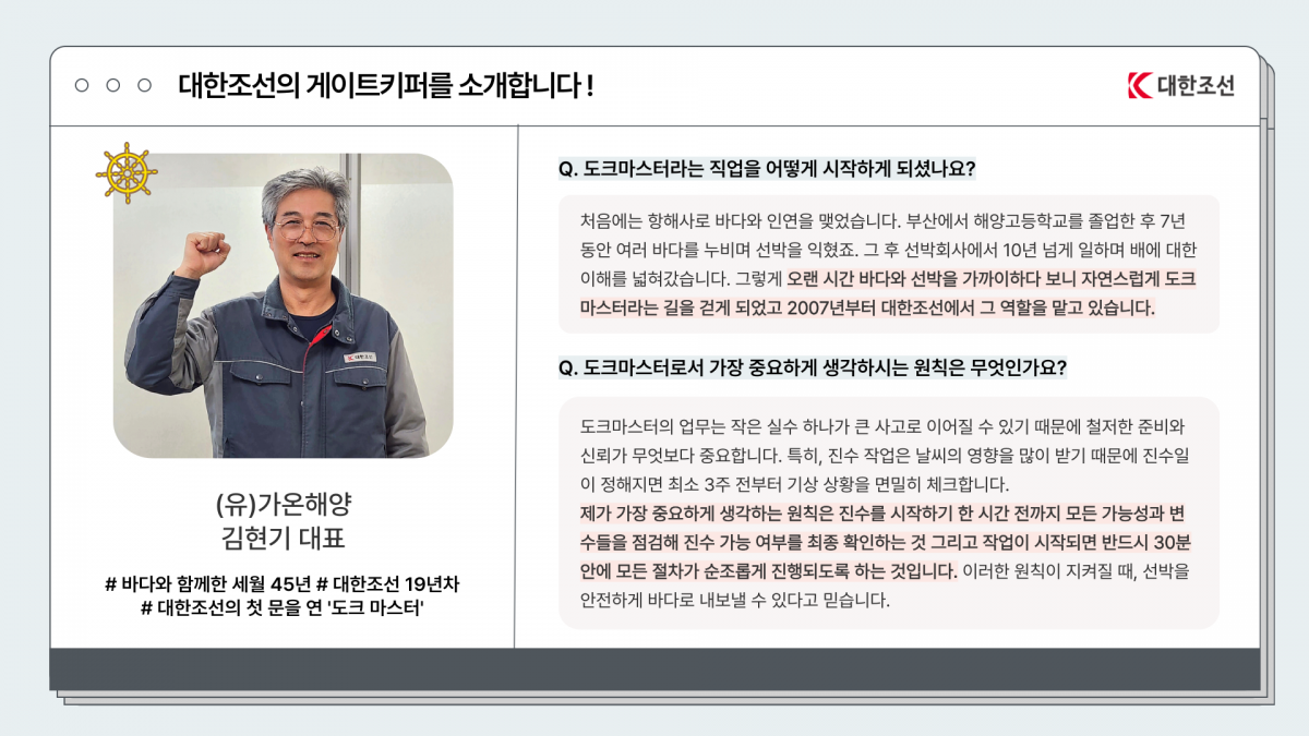 선박과 바다를 잇는 사람, 대한조선 도크마스터를 만나다.