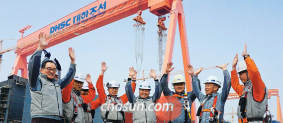 지난 6일 오전 11시쯤 전남 해남군에 있는 대한조선. 축구장 4개짜리 넓이의 선박 건조장 독(dock) 안에서 길이 250m, 높이 20m짜리 유조선 한 척을 만드는 작업이 한창이었다. 수십명의 근로자들이 배 위를 바쁘게 오갔고, 선체 곳곳에서 용접하는 불꽃이 튀었다. 쇠를 갈아내는 소리가 조선소 전체에 윙윙거리며 울렸다. 독을 가리키며 박용덕 대한조선 사장이 말했다. "저기에 지역 경제 1만명의 생계가 달려 있습니다. 지금은 허리띠 졸라매는 게 힘들지만 끝까지 버텨야 기회가 온다고 생각하며 다 같이 한마음으로 일하고 있습니다."
