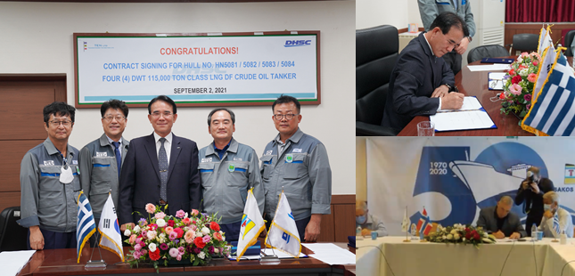 Στις 2 Σεπτεμβρίου, η Daehan Shipbuilding κέρδισε έξι δεξαμενόπλοια 115.000 τόνων με καύσιμα LNG (συμπεριλαμβανομένων τεσσάρων μεταφορέων αργού πετρελαίου κατηγορίας Aframax και δύο προαιρετικών πλοίων μεταφοράς προϊόντων LR2) από την Tsakos Energy Navigation (TEN).