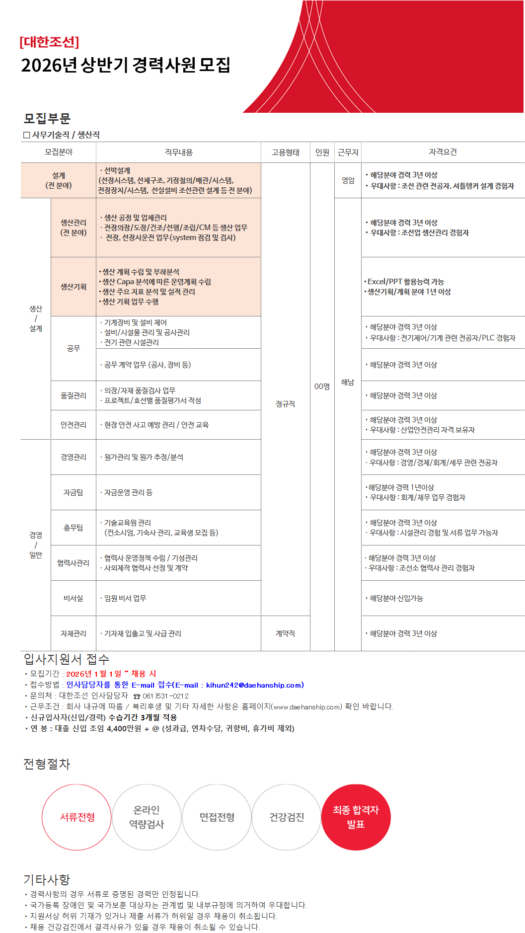 대한조선은 인재를 최고의 기업가치로 생각합니다.