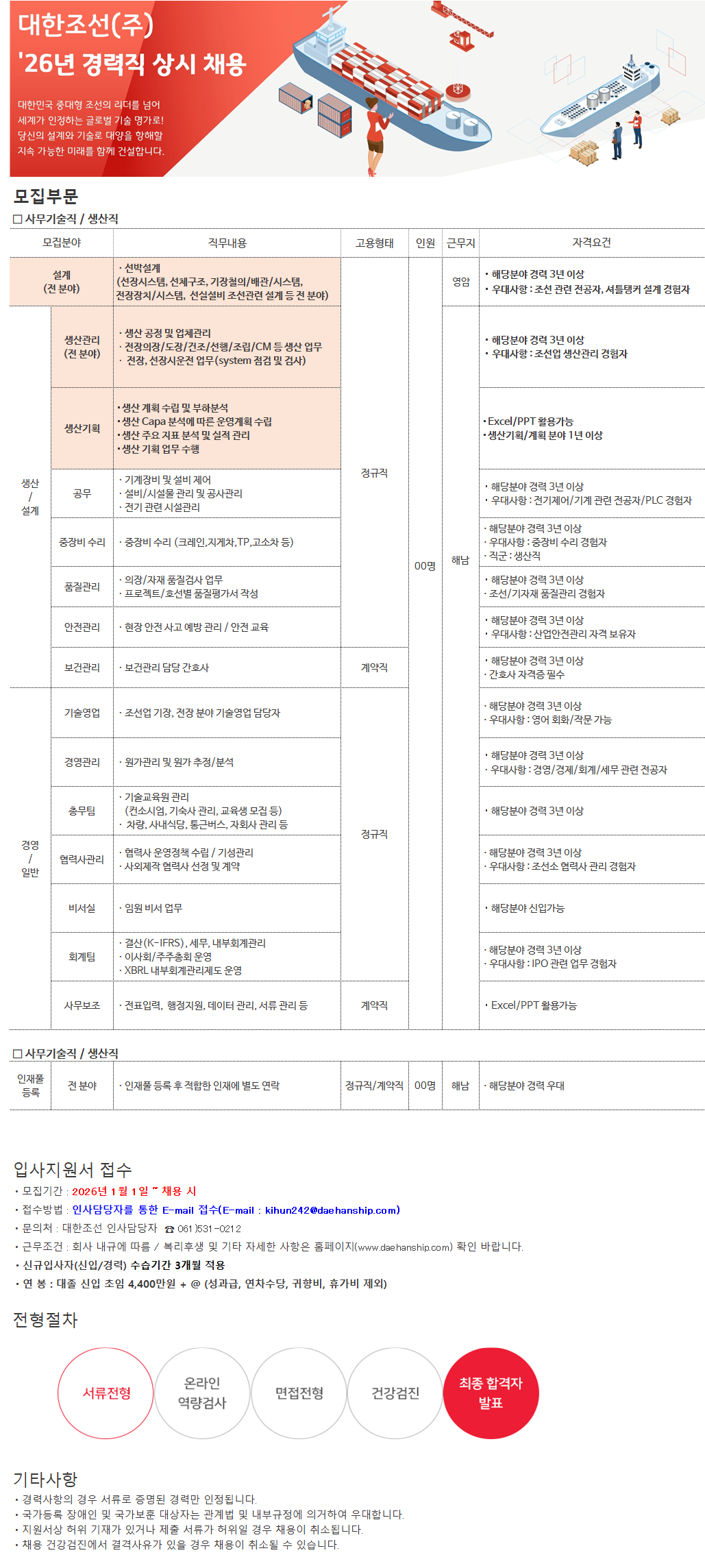 대한조선은 인재를 최고의 기업가치로 생각합니다.