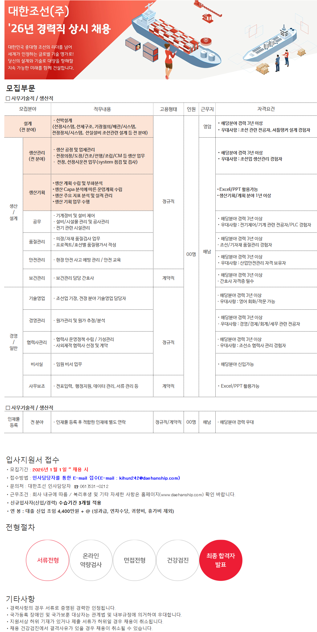 대한조선은 인재를 최고의 기업가치로 생각합니다.
