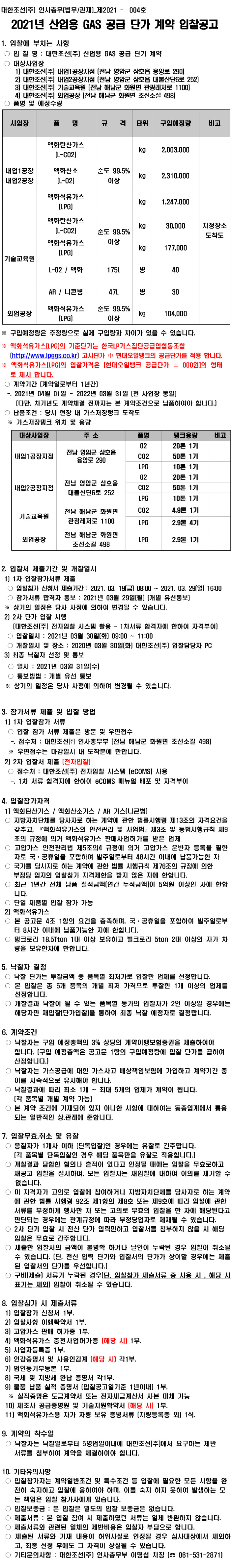 대한조선(주) 2021년 산업용 GAS 공급 단가계약 입찰공고